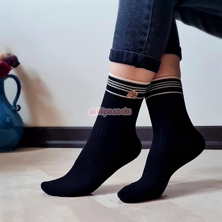 جوراب ساقدار کبریتی گلدوزی طرح تدی زنانه