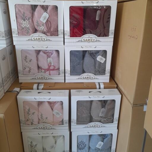 حوله نیم ست دوبل عروس وداماد تن پوش حوله دست 40در80 لیف دمپایی ترک