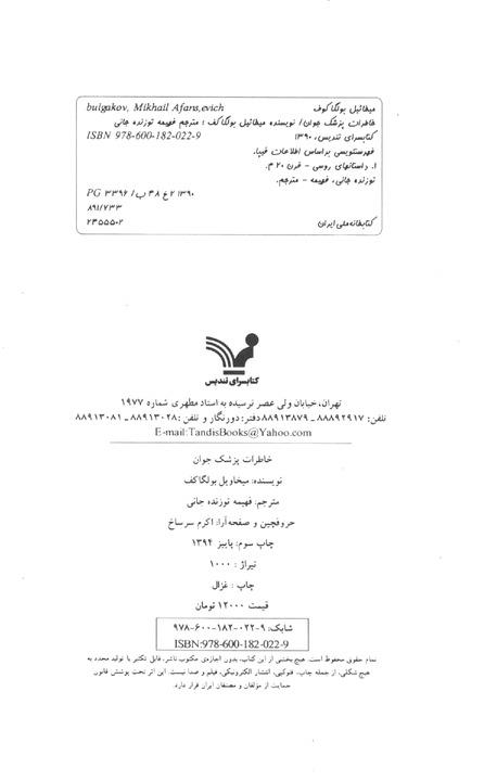 کتاب خاطرات پزشک جوان به نویسندگی میخائیل بولگاکف توسط انتشارات تندیس منتشر شده است.