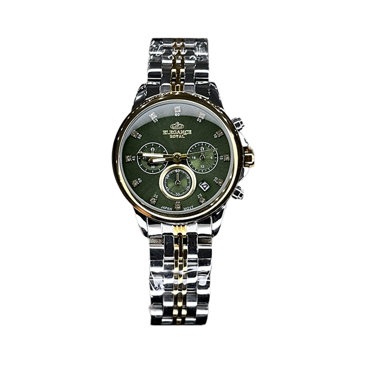 خرید قسطی | ساعت مچی زنانه الگانس نقره ای طلایی صفحه سبز L 9766...