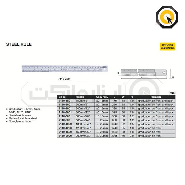 مشخصات فنی خط کش فلزی 100 سانت Insize ( اینسایز ) مدل 7110-1000