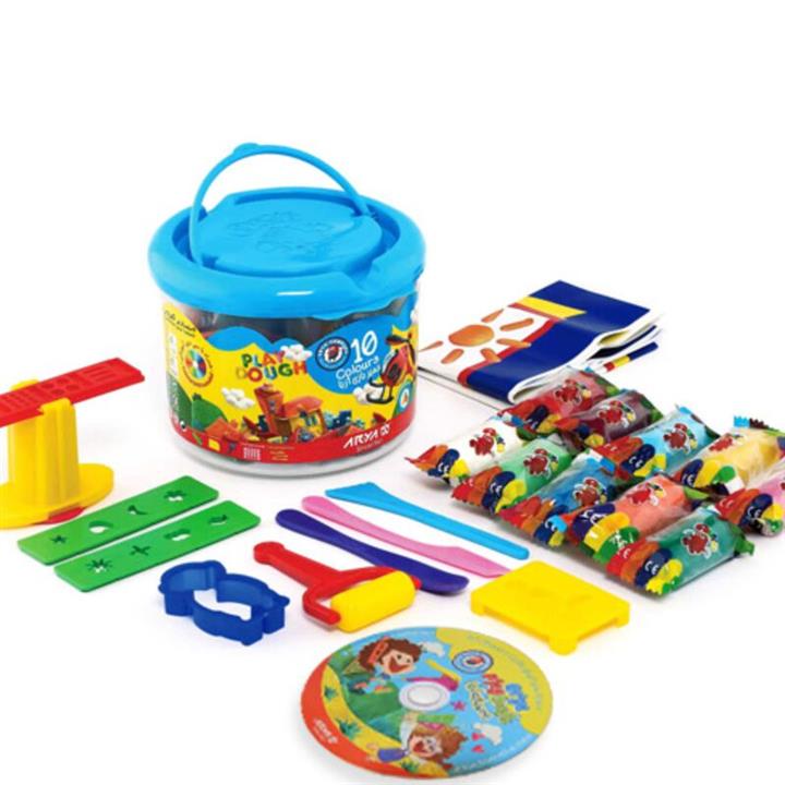 خمیر سطلی ده رنگ آریا همراه با شابلون و وسایل جانبی