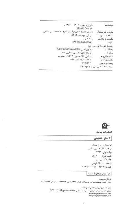 کتاب دختر کشیش اثر جورج اورول انتشارات مجید