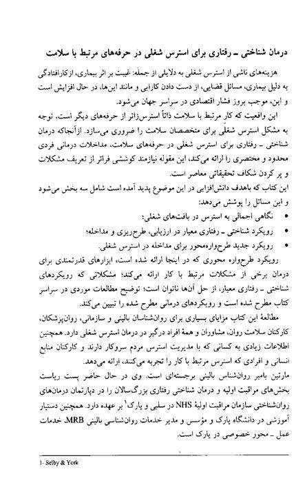 مشخصات فنی درمان شناختی رفتاری استرس شغلی در حرفه های سلامت