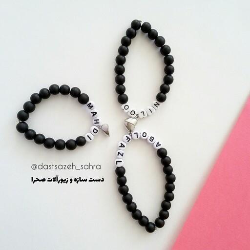 ست دستبند اسم مگنتی گره کشویی ست سه تایی با مگنت قلب و سنگ ا...
