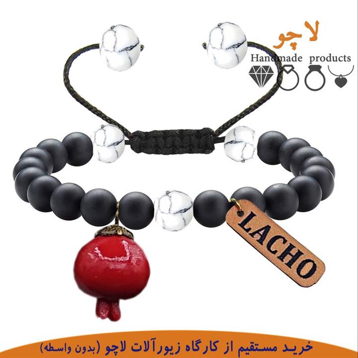 دستبند سنگی گره ای زنانه برند لاچو (دستبند انار ) دستبند کشویی سنگ هولیت کد5
