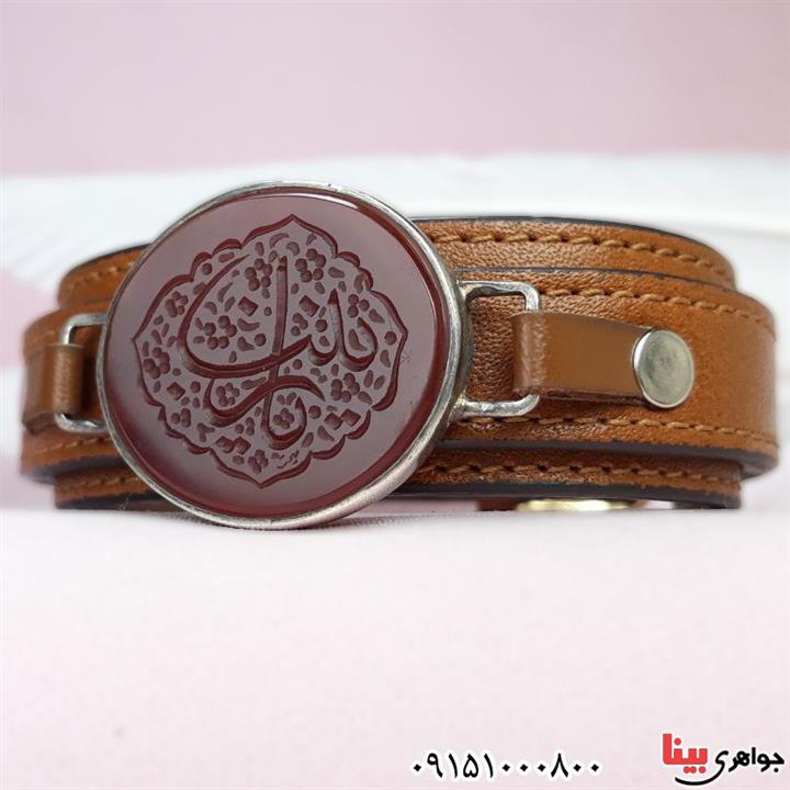 دستبند عقیق قرمز چرمی خطی با حکاکی یا زینب زنانه مردانه ۳۲۳۲۸