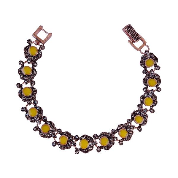 دستبند مسی مارگازیت طرح گل شیپوری نگین زرد کد JW508.1