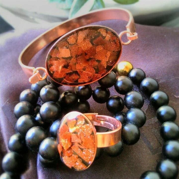 دستبند و انگشتر مسی سنگ دلربا طرح بیضی