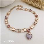 دستبند زنانه ژوپینگ مدل قلبی نگین دار رنگی کد B1235