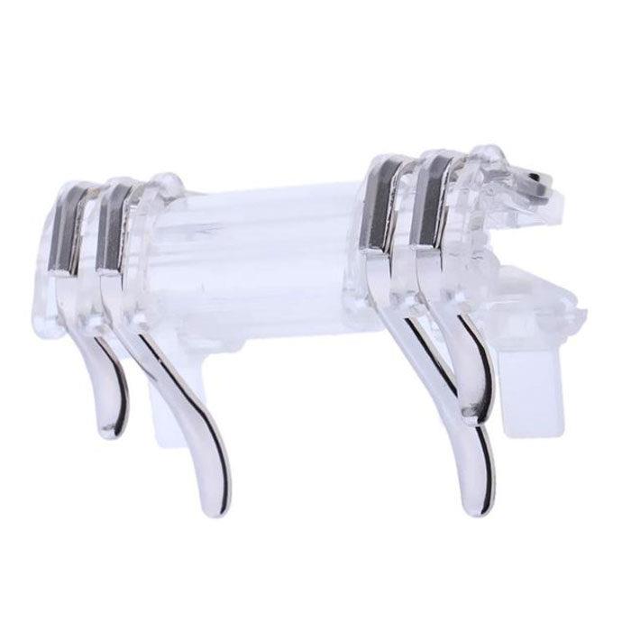 دارای ۴ ماشه مکانیکی\r\nحداکثر ساپورت ضخامت گوشی 7.5 میلی متر\r\nحداقل ساپورت ضخامت گوشی 4.5 میلی متر\r\nجنس بدنه پلاستیک فشرده\r\nمواد استفاده شده : ABS + PC\r\nشامل یک عدد دسته با قابلیت جدا شدن\r\nقابلیت تبدیل شدن به دو عدد جوی استیک برای چپ و راست\r\nقابلیت ارتجاعی و افزایش طول دسته تا ۵ سانتی متر\r\nقابل وصل روی سیستم عامل اندروید و ios