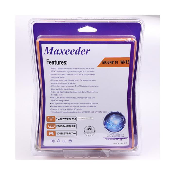 مشخصات فنی دسته بازی بیسیم مکسیدر مدل MX-GP8110 WN12 دوتایی