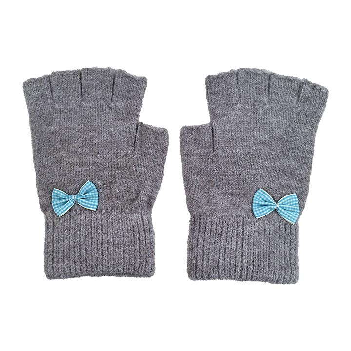 دستکش بافتنی دخترانه نیم انگشتی طرح پاپیون کد 1094