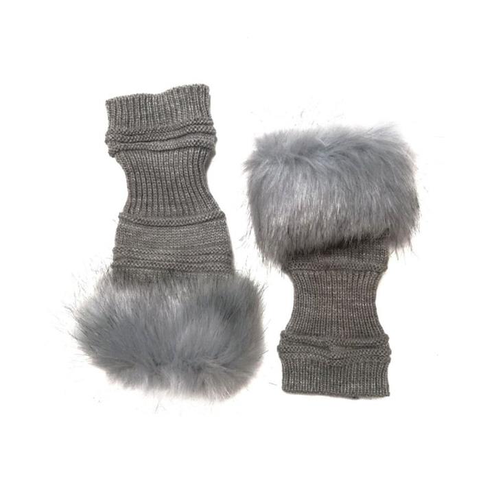 دستکش بافتنی زنانه مدل خزدار رنگ طوسی