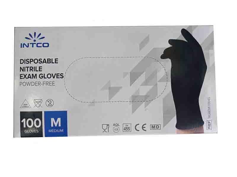 دستکش نیتریل اینتکو بسته 100 عددی سایز مدیوم(مشکی)