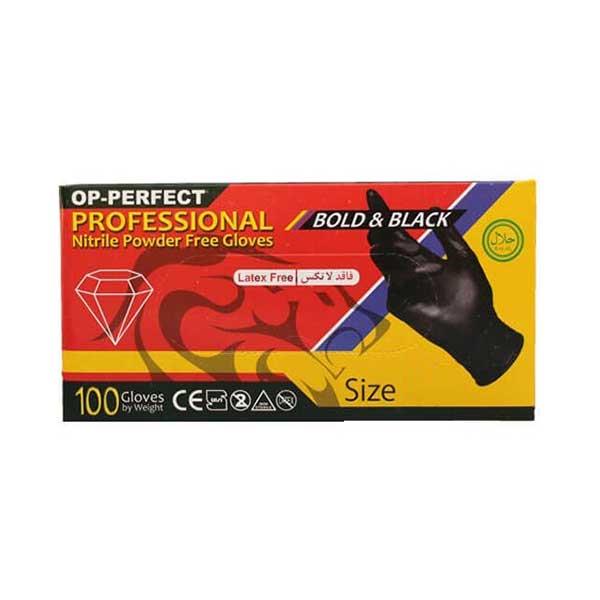 دستکش نیتریل مشکی اوپی پرفکت 100 عددی سایز مدیوم size:m OP Perfect