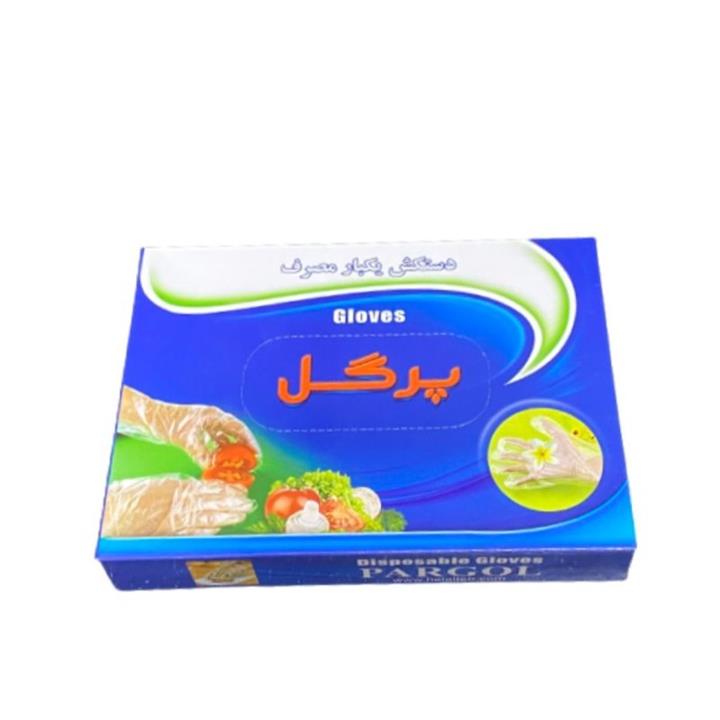 دستکش یکبار مصرف پرگل مدل نایلونی بسته 100 عددی