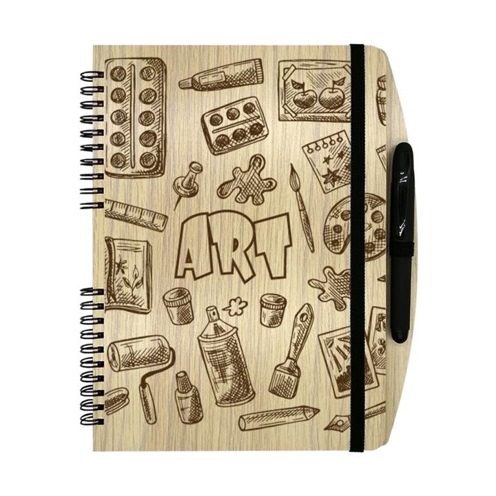 جنس جلد چوبی با طرح هاي متنوع و زيبا به همراه روان نویس کوچک و شامل کاغذ کرافت بدون خط
