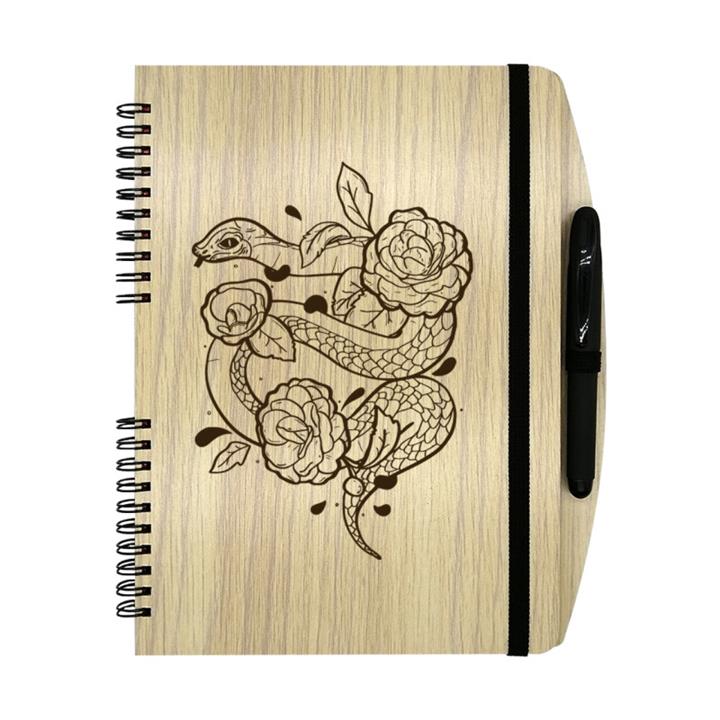 جنس جلد چوبی با طرح هاي متنوع و زيبا به همراه روان نویس کوچک و شامل کاغذ کرافت بدون خط