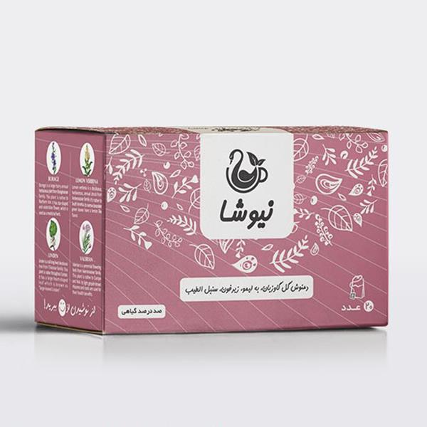 مشخصات فنی دمنوش گل گاوزبان به لیمو زیرفون سنبل الطیب کیسه ای نیوشا