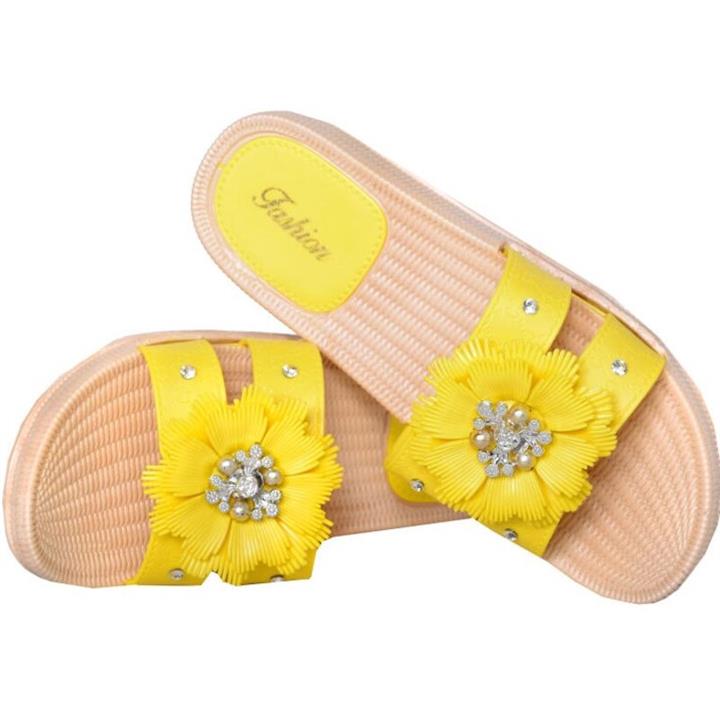 دمپایی دخترانه گل دار کد 304222 رنگ زرد سایز 26 تا 35