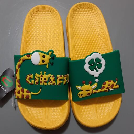 دمپایی زنانه و دخترانه طرح زرافه ای رنگ زرد وارداتی