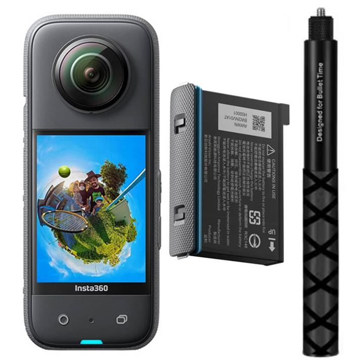 دوربین فیلم برداری ورزشی اینستا 360 مدل X3 به همراه مونوپاد 120 سانتی متری و باتری اضافه