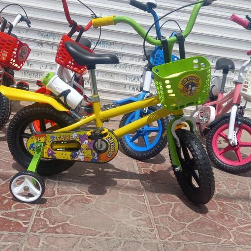 دوچرخه12 مقاوم بدنه فلز ،با چرخ های پهن و کمکی و قمقمه و سبد...