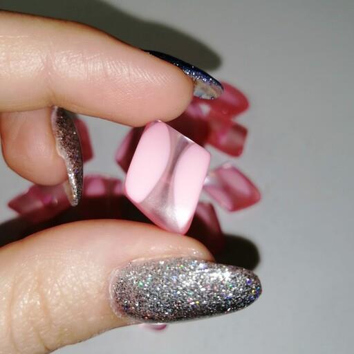دکمه لباس صورتی مستطیلی شیشه ای بسته 14 عددی