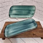 دیس پذیرایی / شیرینی خوری سرامیکی بیضی رنگ آبی دستساز