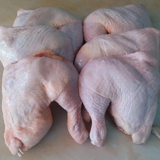 ران مرغ کشتار روز با پوست و با کمر یک کیلوگرمی آماده مصرف