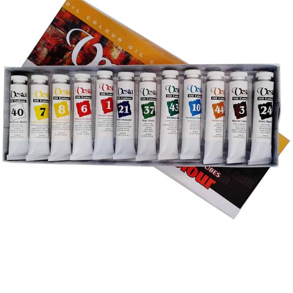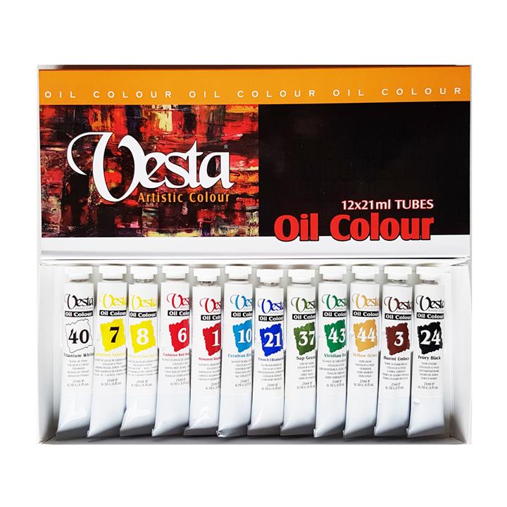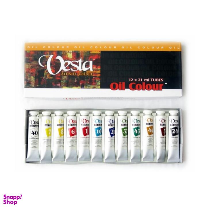 بسته 12 رنگ رنگ روغن تیوپی 21 میل وستا