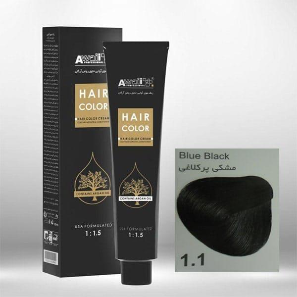 رنگ مو آوایی شماره 1.1 حجم 120 میل رنگ مشکی پرکلاغی Awaii