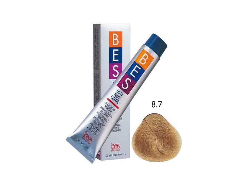 رنگ مو بس شماره 8.7 حجم 100 میلی لیتر رنگ بلوند تنباکویی روشن