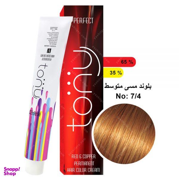 رنگ مو تونی سری مسی شماره 7.4 حجم 100 میلی لیتر رنگ بلوند مسی متوسط