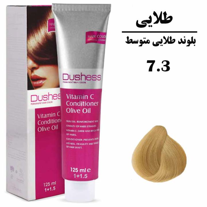 مشخصات فنی رنگ مو دوشس سری طلایی شماره 7.3 حجم 125 میلی لیتر رنگ بلوند طلایی متوسط