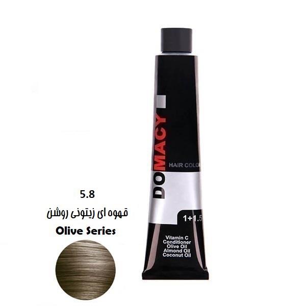 رنگ مو دوماسی سری زیتونی شماره 5.8 حجم 120 میلی لیتر رنگ قهوه ای زیتونی روشن