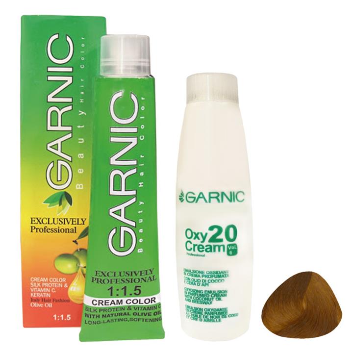 مشخصات فنی رنگ مو گارنیک شماره 7.554 حجم 120 میلی لیتر رنگ کاراملی طلایی متوسط به همراه اکسیدان گارنیک مدل 20vol شش درصدی حجم 180 میلی لیتر