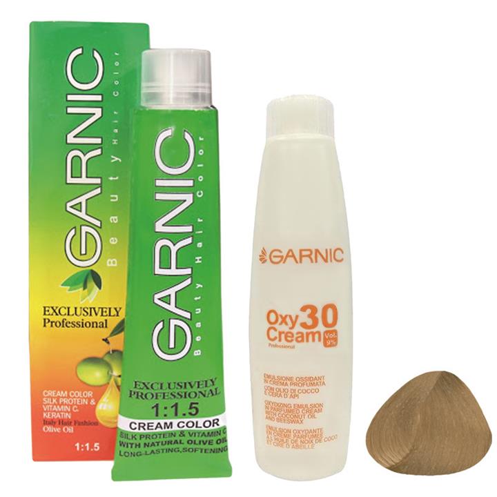 رنگ مو گارنیک شماره 8.77 حجم 120 میلی لیتر رنگ بلوند شنی روشن به همراه اکسیدان مدل 30vol نه درصدی حجم 180 میلی لیتر