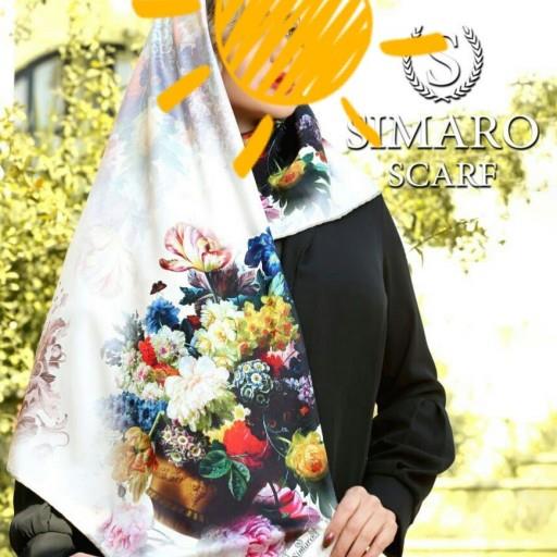 روسری مجلسی قواره 110 ابریشم دور دست دوز زرد سرخابی بنفش