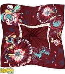 روسری ابریشمی مزونی طرح هندسی دور ماشین دوزی شده