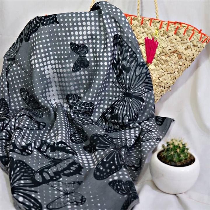 روسری کرپ دور دست دوز در دو طرح(A0779)