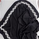 شال کارشده سنگ دوزی و جواهر دوزی طرح برگ و شاخه با ملیله شکسته مشکی اصل