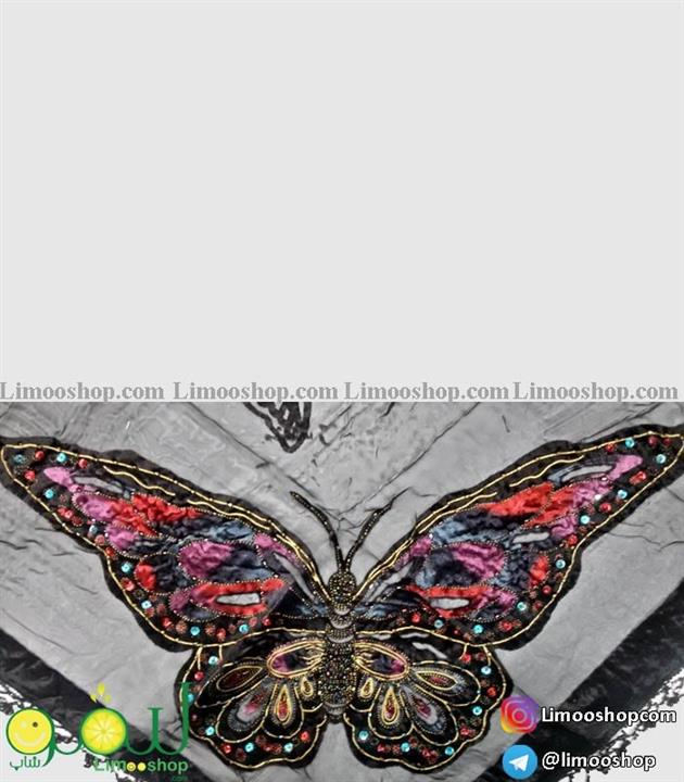 روسری سه گوش مجلسی مشکی نگین دار پروانه
