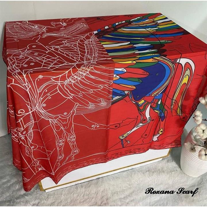 روسری نخی هرمس طرح اسب بالدار چهارفصل قواره 140