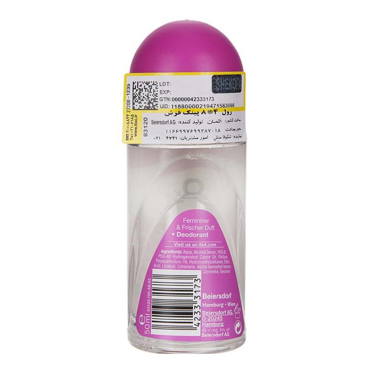 مشخصات فنی رول ضد تعریق زنانه هشت در چهار مدل Pink Fresh حجم 50 میلی لیتر