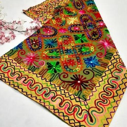 رومیزی مربع سوزن دوزی و آینه کاری B-3 با پارچه کتان و نخ سوز...