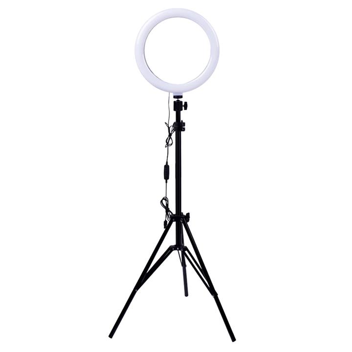 زاویه نوری: 120 درجه\r\nطول سهپایه در حالت بسته: 65 سانتی متر\r\nقطر رینگ لایت: 26 سانتی متر\r\nقابلیت تنظیم کانال و گروبندی نور\r\nامکان نصب باتری و استفاده بدون کابل برق\r\nهمراه پایه نگهدارنده گوشی، سه پایه\r\nمناسب برای برای عکاسی پرتره،تبلیغات و مدلینگ