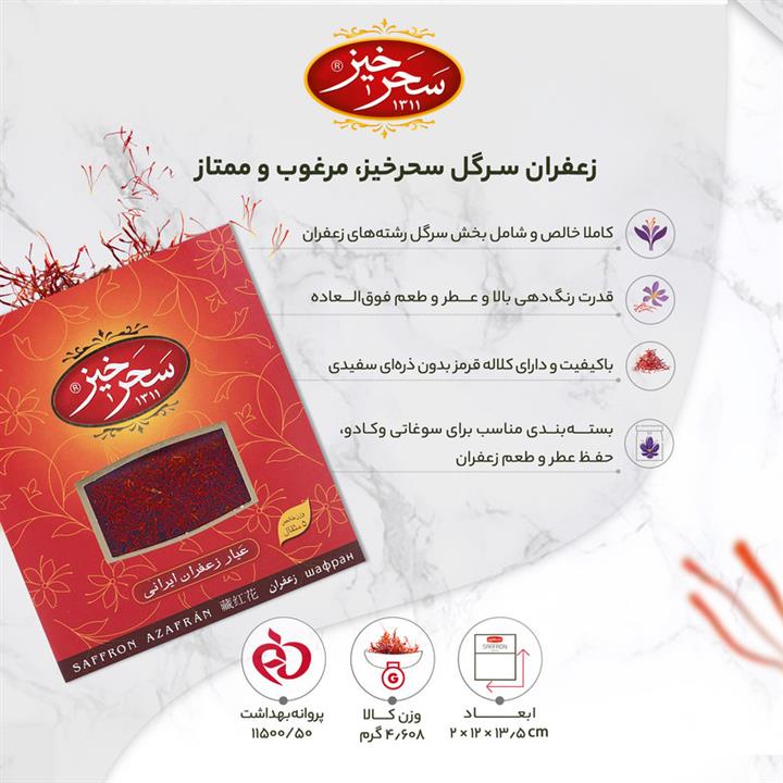 مشخصات فنی زعفران کادویی سحرخیز - 4.608 گرم