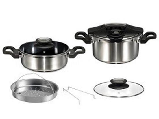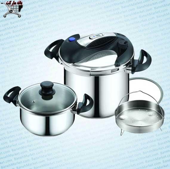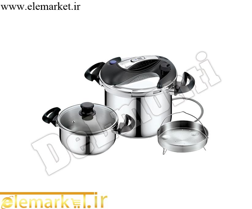 زودپز دو قلوی استیل دلمونتی ایتالیا DL1020 : دارای تایمر زمان پخت , قابلیت شستشوی آسان , بدنه تمام استیل 18/10 , مناسب برای هرگونه شعله , سبد تمام استیل برای بخارپز کردن , دستگیره های ضد حرارت و عایق گرما , دارای درب کش